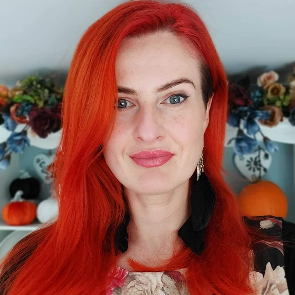 With hair as red as sunrise on a windy day.